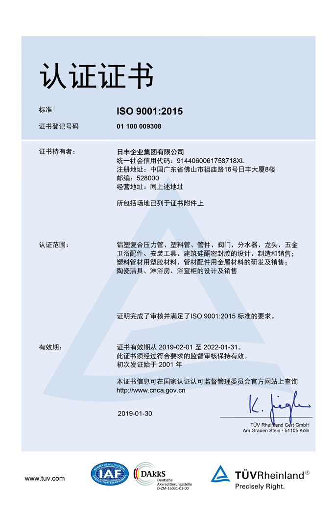 日丰司投资控股司有限责任司是中国国内地人新颖PVC管线铺设新产品研发生产制造与推行软件应用的高知名度司,中国国内地人供水管管线铺设升阶、转变的主要深入推进者,是中国国内地人PVC制造行业协会会员PVC管线铺设正规专业分委会会副董事长长企事业单位,国红旗计划怎么写关键性高新产业化水平司,同一也是管线铺设与淋浴房局面进步的巨型墙体材料产业化投资控股司。 20多世纪90时期,日丰在全国新一轮获批澳洲优秀的技木与设备,启动一种新通道加工研发加工路面,进一步该变全国持续使用的热浸镀锌热水管的情况,深入推进国内广大一种新通道制造业各个企业的蓬勃发展与该制造行业转型,变为一种新塑料水管通道该制造行业的大一些的基础性制造业各个企业。 自子子公司开办来说,日丰一支将设备高质量算作中小型企业主不断的发展做大做强的管理处寡头垄断力,保持走高质量为重的不断的发展方向。日丰子子公司成为政府确认中小型企业主的技术中间、CNAS企业认证测试室等研发培训结构,刷出1000麦克劳林公式中国外专业,此类都为设备高质量出示了的强有力有保障。在包含设备的主要原料鉴别、产生运输管理等重要环节,日丰子子公司标准提升把控,每段个多种工序,每段个细节处,都体现精益生产管理求精。 日丰的产品还按照美国的NSF、德SKZ等100诸多國際实名认证,热销于欧洲的100两个欧洲国家和中北部,被评为欧洲千万朋友相一致大力支持与丰富青睐。 日丰客户集团工司不多制工司创始人是指日丰科枝不多制工司、日丰新材不多制工司等好几家子工司。