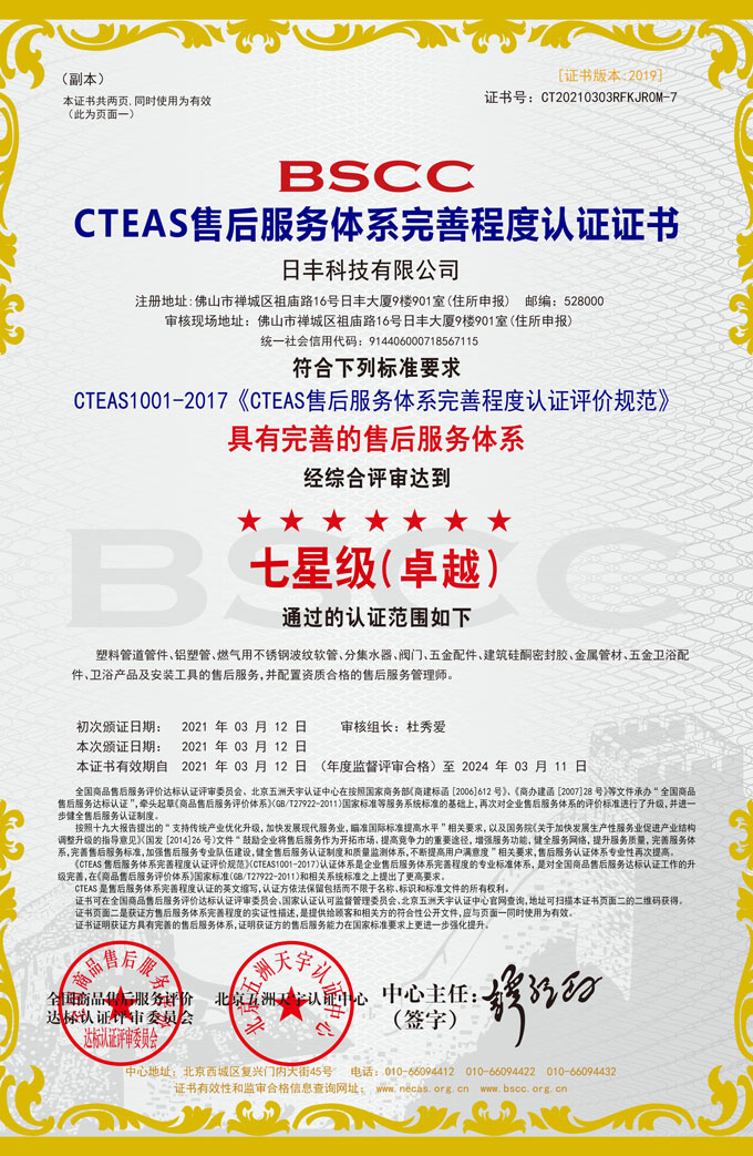 20多年以来,在严守产品的品控的同时,日丰还逐渐掌握市场上和粉丝消费需求,建立促进改革互联网互联网行业的服务的质量保障摸式。两千多年2010年,日丰就在在国内第一次为粉丝展示完全免费的闭水试压及滤油器的检测、质量检查等半套专科化服务的质量保障,取消中国国水管互联网互联网行业专科化、管理规范化服务的质量保障之先例。 近近些年来,日丰又在现有售后服务保障项目线效果于项目的根本上,搞出体系化优化和升极,隆重上线了“类产品设备+售后服务保障项目线效果于项目”的制造业新形式 ——日丰健康卫士22售后服务保障项目线效果于项目,为我们保证全不花钱检查测量真假、全不花钱通水试压、全不花钱线效果检查液压管路、全不花钱拍攝保护等售后服务保障项目线效果于项目。也,日丰健康卫士22售后服务保障项目线效果于项目提昌的 “双维修”(类产品设备线效果维修与悍接线效果维修),在业内人士推广营销力道大、服务保障意识力强、盖住面广、受惠中国国家忆万我们,为促进制造业售后服务保障项目线效果于项目总布局努力搞出了优胜的业绩。