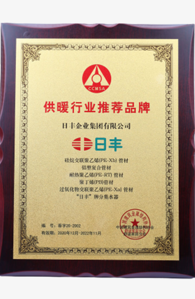 1996 — 2002 率先创举,行业变革 1999年,我国的市日丰行业限制集团正式的建立,并在我国的力争从欧洲其他国家机遇先进的的生产销售仪器和系统,形成我国的复合型的供水热力管道行业的先驱者,“日丰管”也形成了复合型的供水热力管道的代专有名词。 随后,在中国更多新式的管网铺设中小企业而使得现身,社会上上越变越小的人逐渐开始认可并喜爱用到新式的管网铺设。日丰驱动了整管网铺设企业的科技革命,日丰的联合挚友小分队,也而使得便捷不断发展和蓬勃发展。