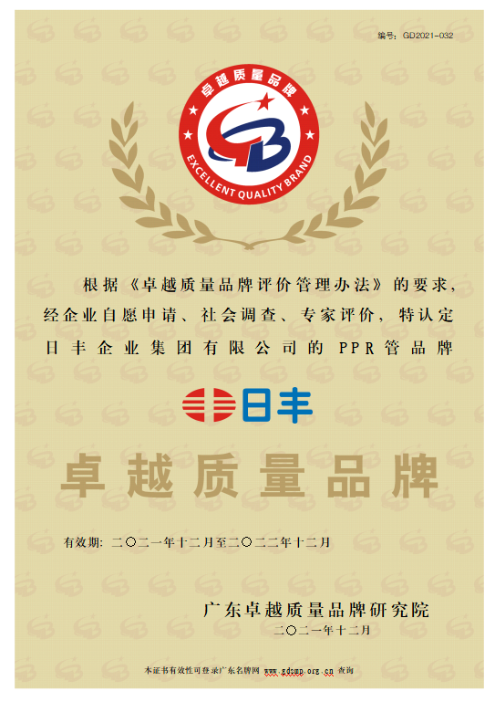 2002 — 2007 强势出击,行业崛起 途经十来年的成长 ,日丰已成长 变成了国外管路行业内内的遥遥领先的品脾。要有效地做到市场中和消费者要求,200八年,日丰又投放市场PP-R管。归功于鼓起的研究开发优势、领航的新产品品性与力量强大的的品脾影向力,日丰在PP-R行业内内较快文明崛起。